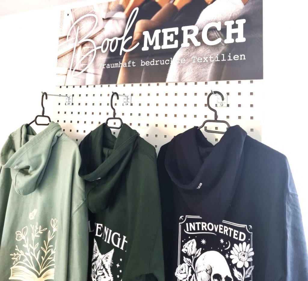 - Textilien mit Lesemotiven wie Hoodies (29,00€)